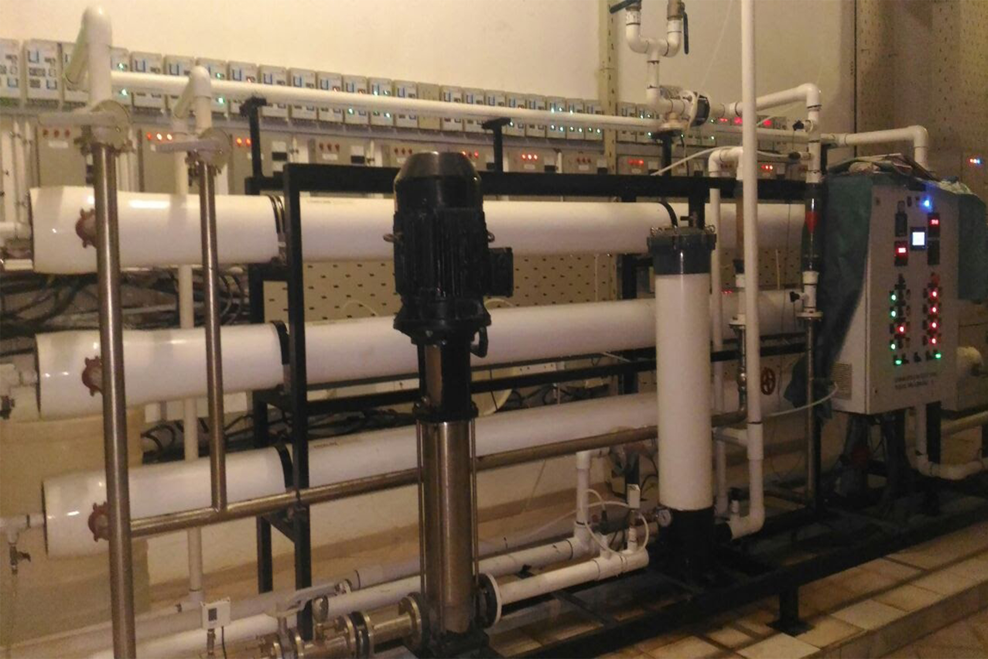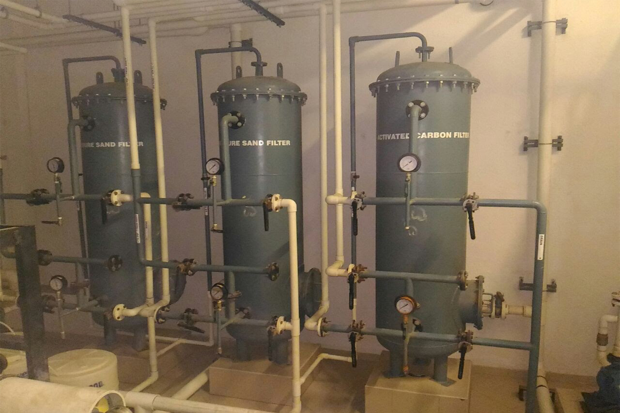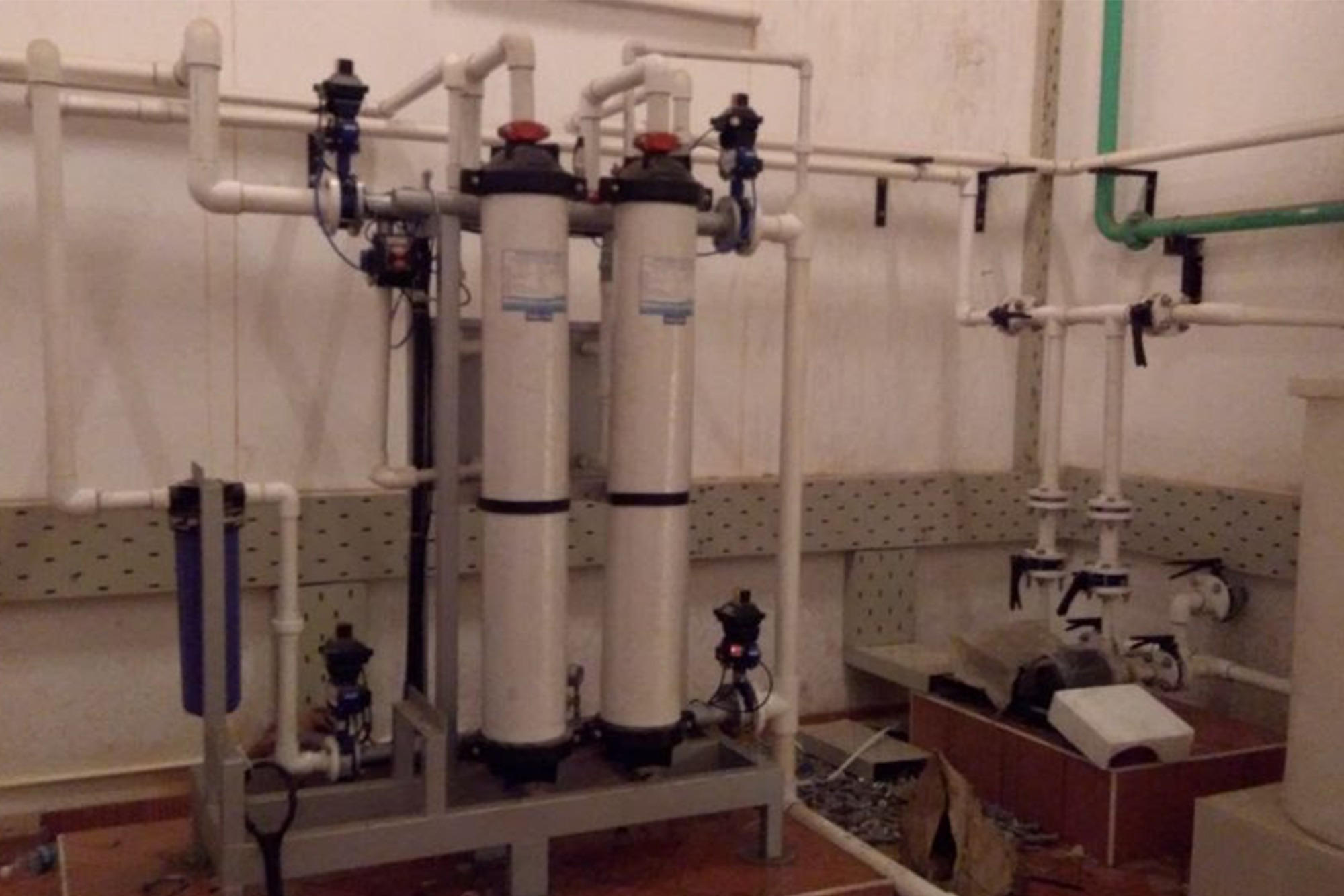 Drinking water treatment plant with media filtration followed by RO and UV systems of capacity ranging from 100 Kld to 1000 Kld.
